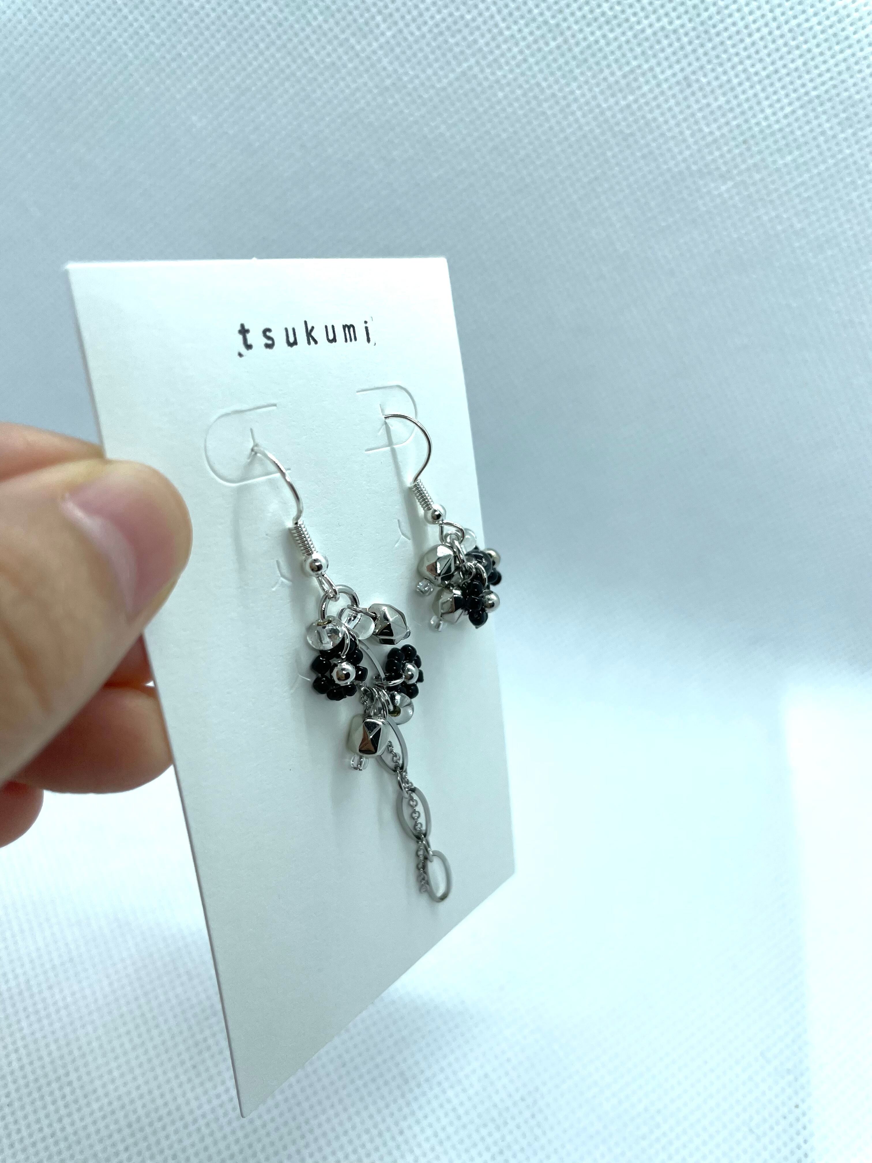 -Beads&chain- ビーズ花/チェーン/ピアス/イヤリング
