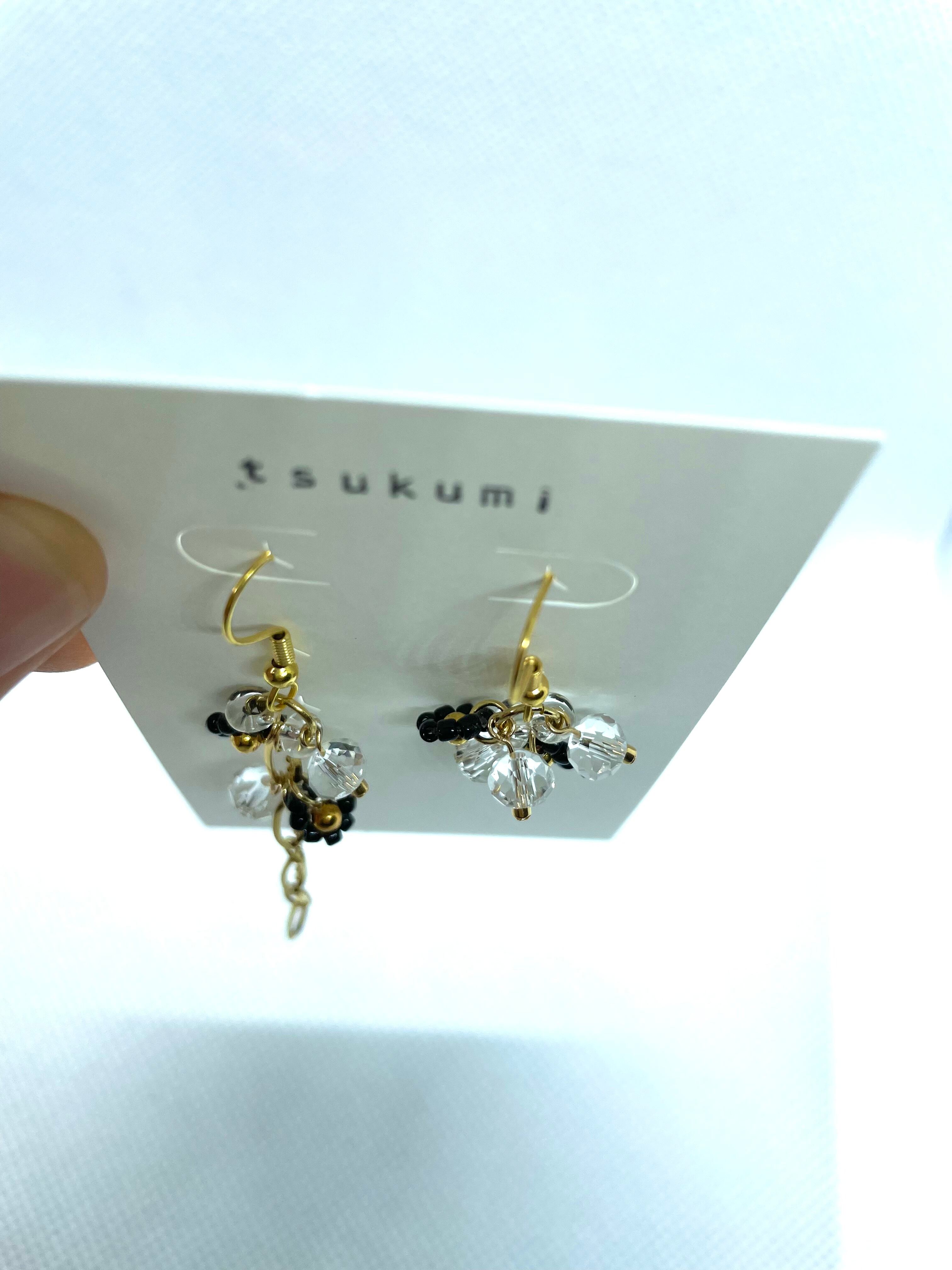 ビーズで作ったお花とチェーンがアクセントのアシンメトリーの耳飾りです‼︎