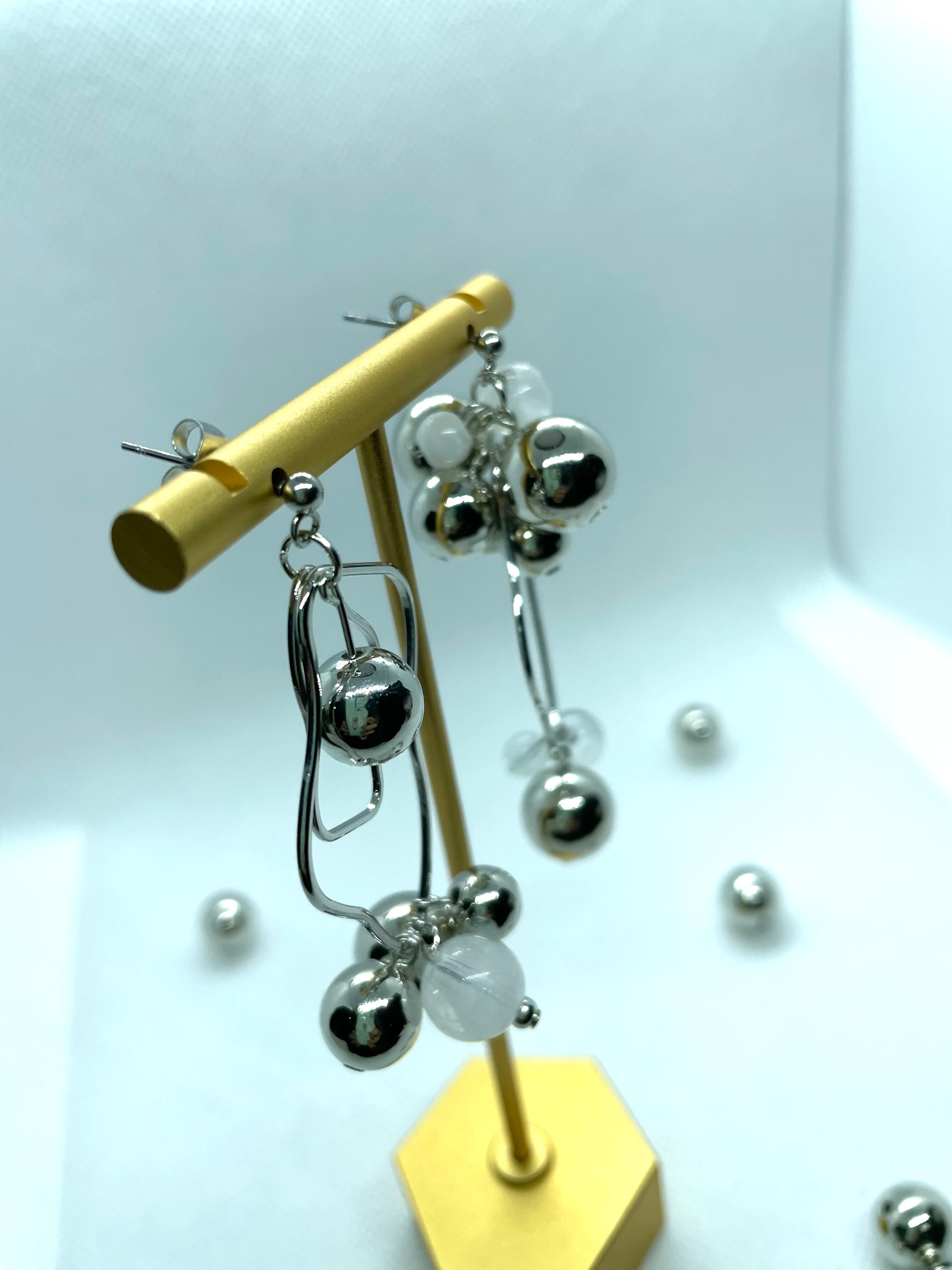 こちらの作品はシルバーを基調としたフープとメタルパーツを使った耳飾りです。