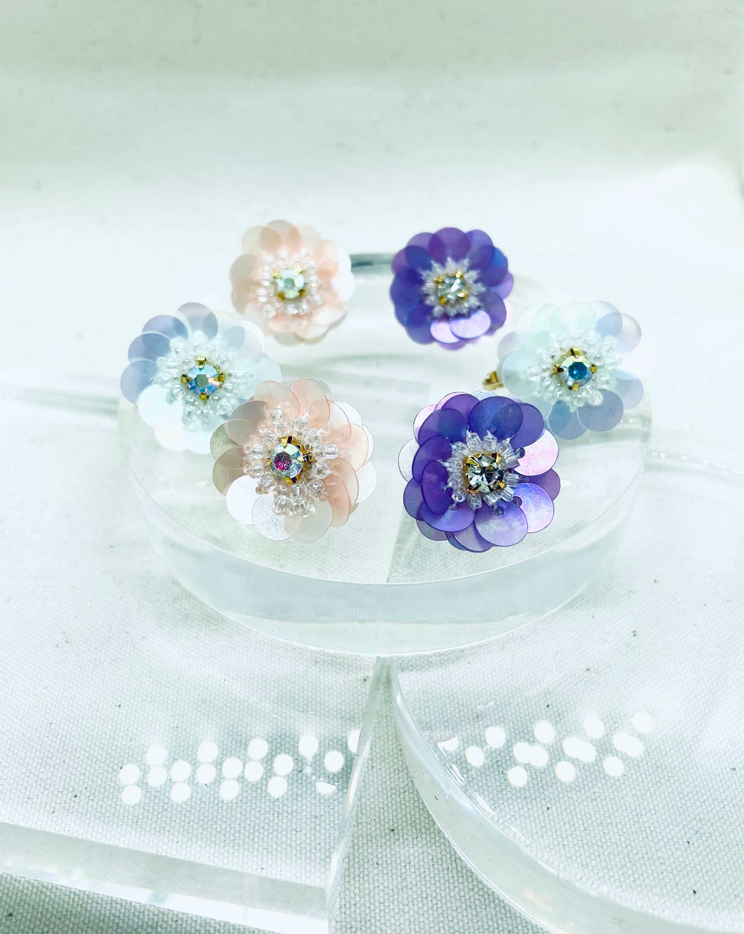 #春#パステルカラー#スパンコール#ビーズパーツ#お花#花#ビジュー#花びら#花びらピアス#花びらアクセサリー#アクセサリー#ビーズ花火#春色#春ピアス#春色新作2022#春色#パステル#淡い