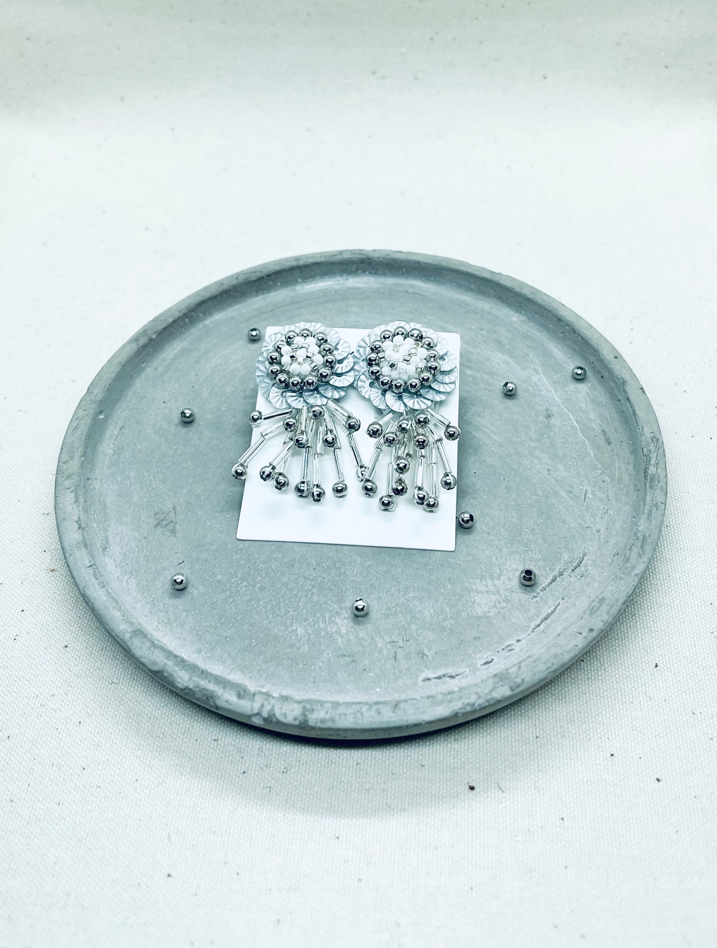 シルバー/ビーズ/メタルピアス/スパンコールピアス/ソレイユ/スパンコールメタル/グレーメタル/竹ビーズ/花/スパンコールイヤリング/ビーズピアス/ビーズアクセサリー/ビーズイヤリング