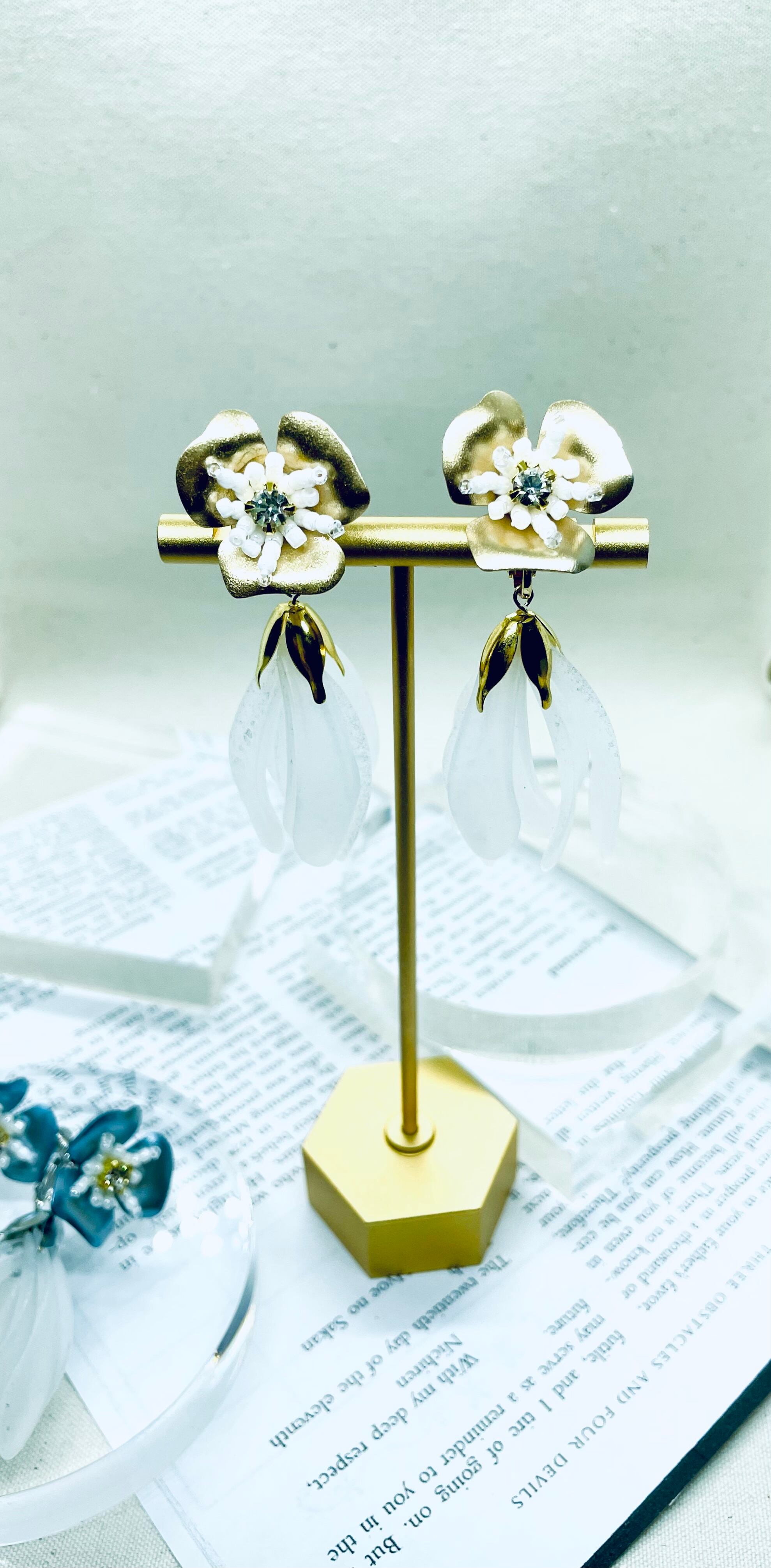 アクセサリー/花ピアス/花イヤリング/花びらアクセサリー/花びら/春/春の新作2022/2way/花/ビーズアクセサリー/花ビーズ/ゴールド/パールカラー/上品/