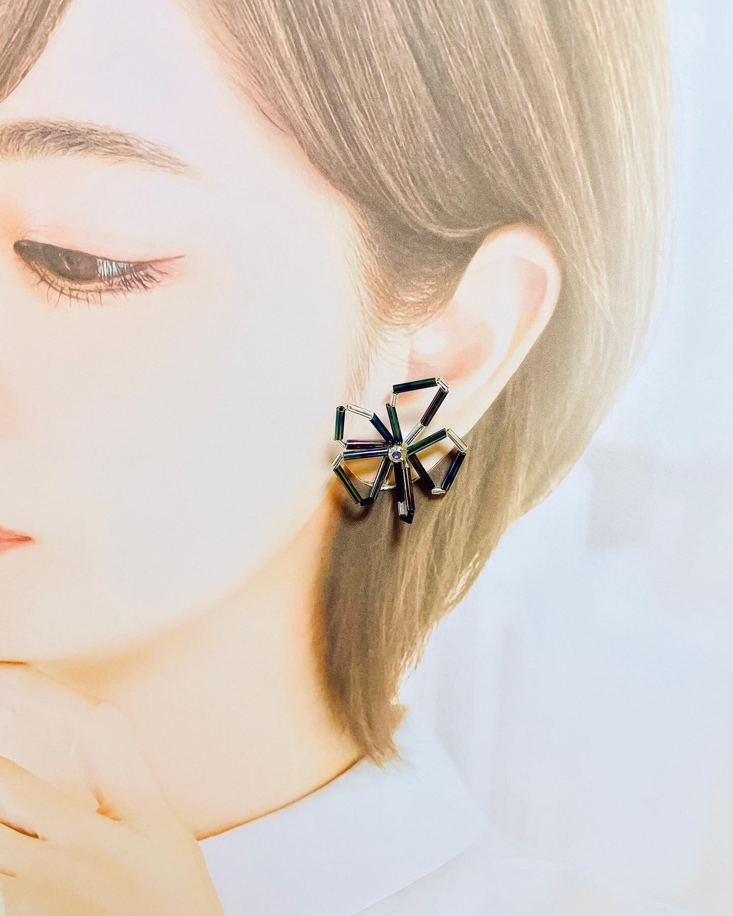こちらの作品は長さの違う竹ビーズをつかったお花のようなピアス、イヤリングです。