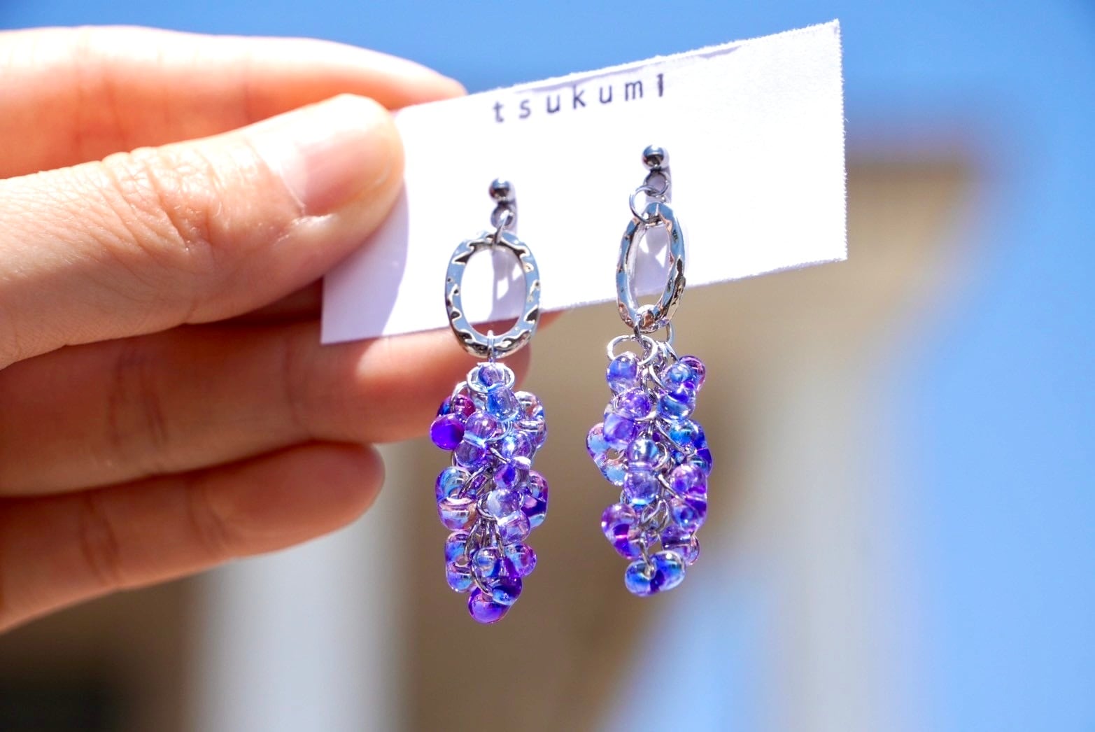 ファルファーレをひとつひとつ丸カンで繋げていますので、ひとつぶひとつぶ揺れて可愛いです。