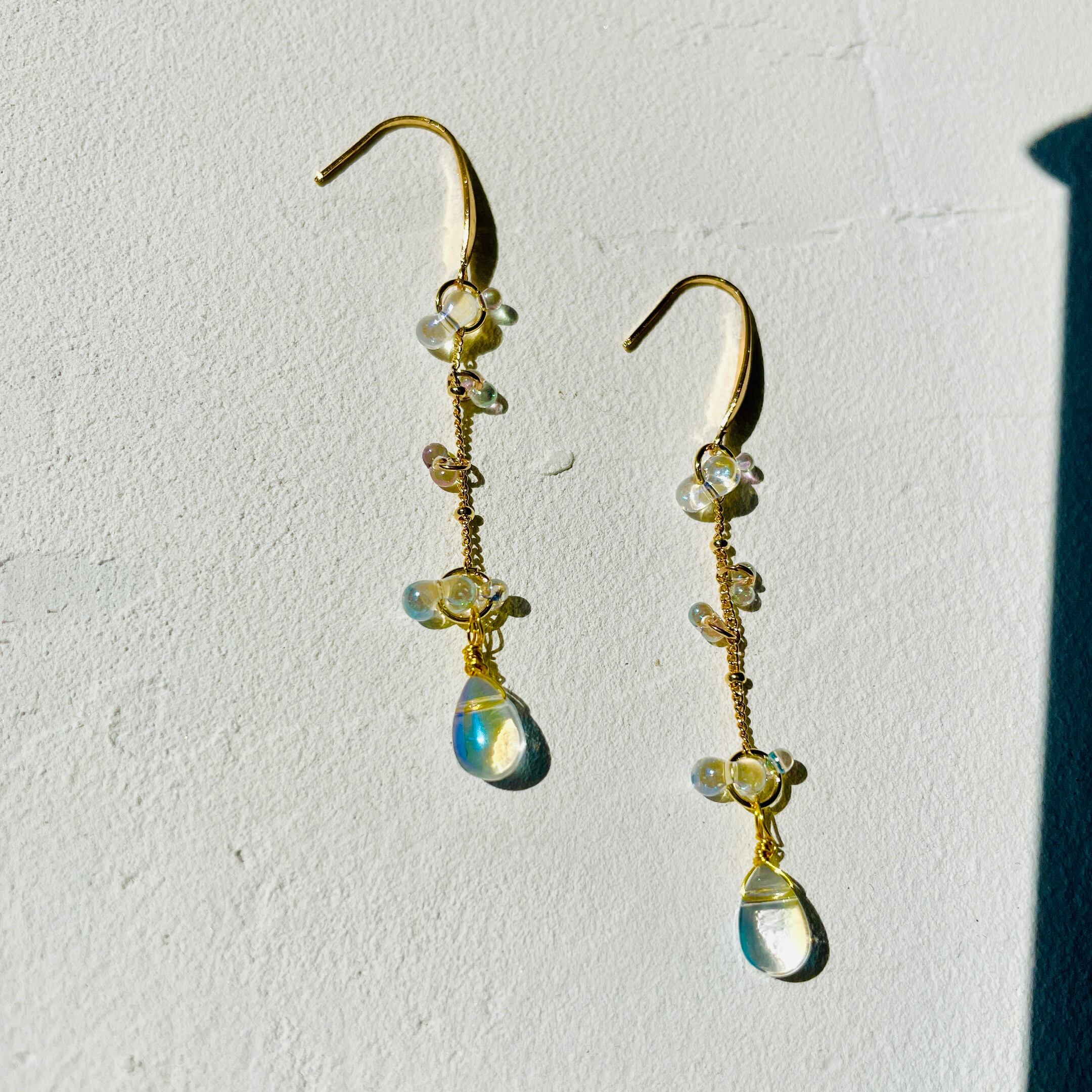 チェコビーズとしずくビーズで雨の光を表現しています。