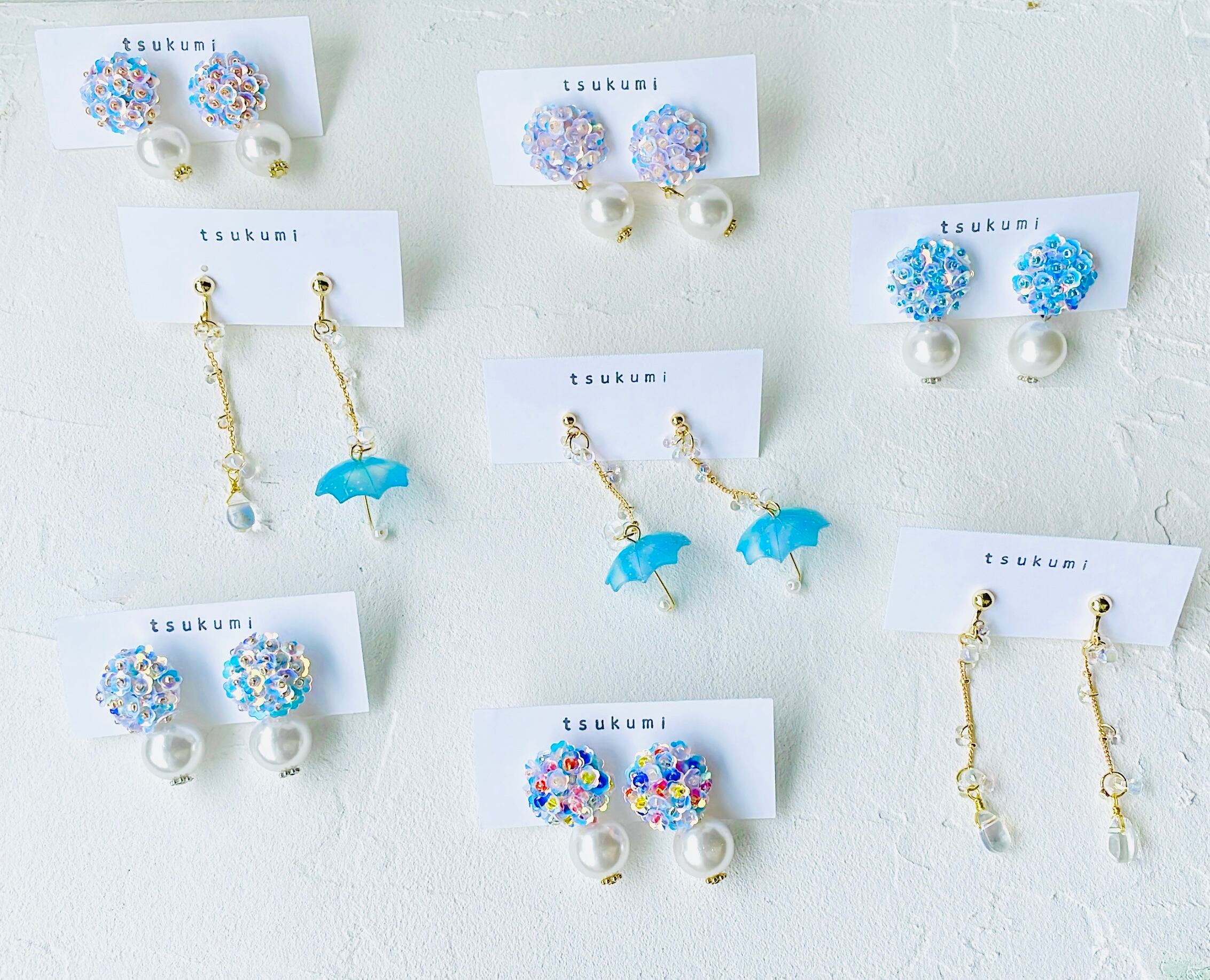 アクセサリー/シルバー/ピアス/イヤリング/軽い/ビーズ/クリア/ファルファーレ/ゴールド/クリア/パープル/エメラルド/クリア/夏/夏アクセサリー/クリアアクセサリー/シルバーアクセサリー/パール/シルバーパーツ/クリアピアス/#傘#傘アクセサリー#傘ピアス#梅雨#梅雨アクセサリー#しずく#雫#しずくアクセサリー