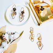 こちらの作品はガラスビーズと変形フープを組み合わせた耳飾りになります。