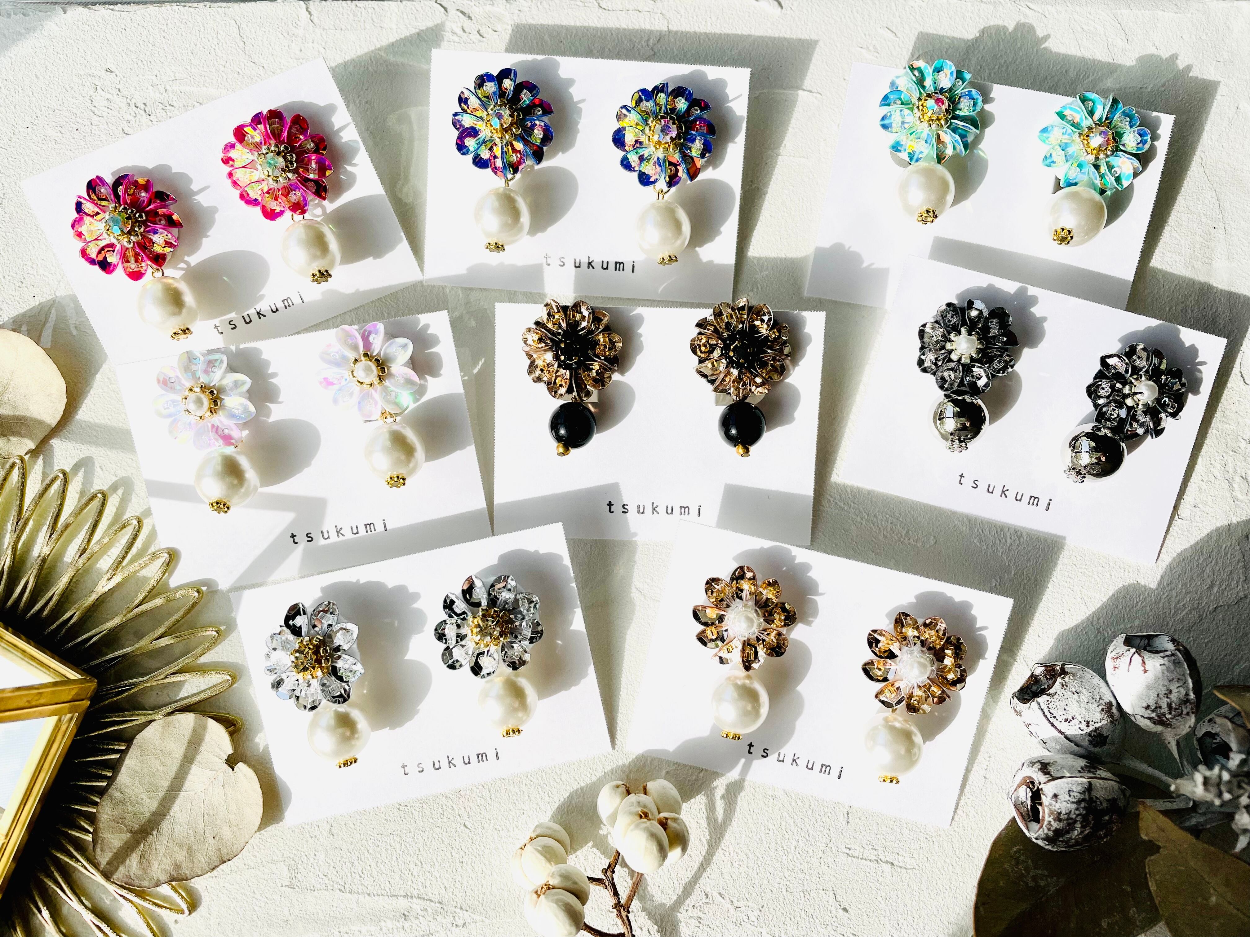 #春#パステルカラー#スパンコール#ビーズパーツ#お花#花#ビジュー#花びら#花びらピアス#花びらアクセサリー#アクセサリー#ビーズ花火#春色#春ピアス#春色新作2022#春色#パステル#淡い